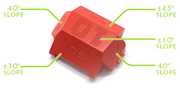 Числа на гранях обозначают угол (относительно горизонта) соответствующей плоскости. Вы просто ставите стенд на некую поверхность, и камера готова к работе. Не нужны никакие винты, зажимы, клипсы или штативные площадки.